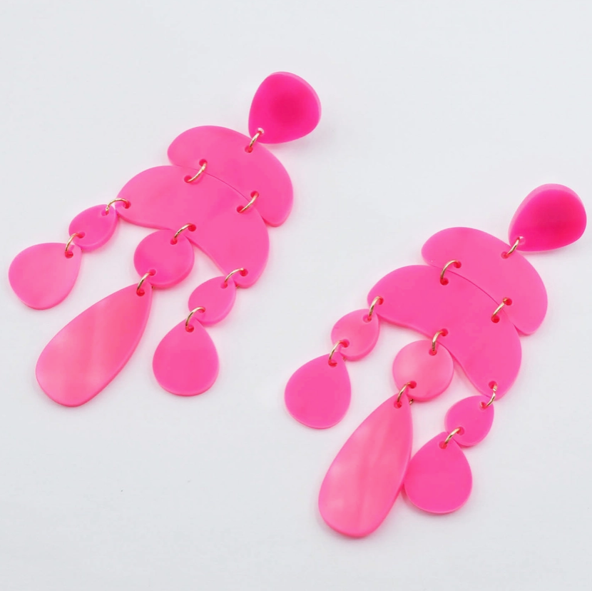 Add a pop of color to your outfit with the Ariana Earrings! Made of neon pink acrylic, these earrings are perfect for adding a playful touch to any look. Stand out from the crowd and embrace your fun side with these quirky statement earrings.