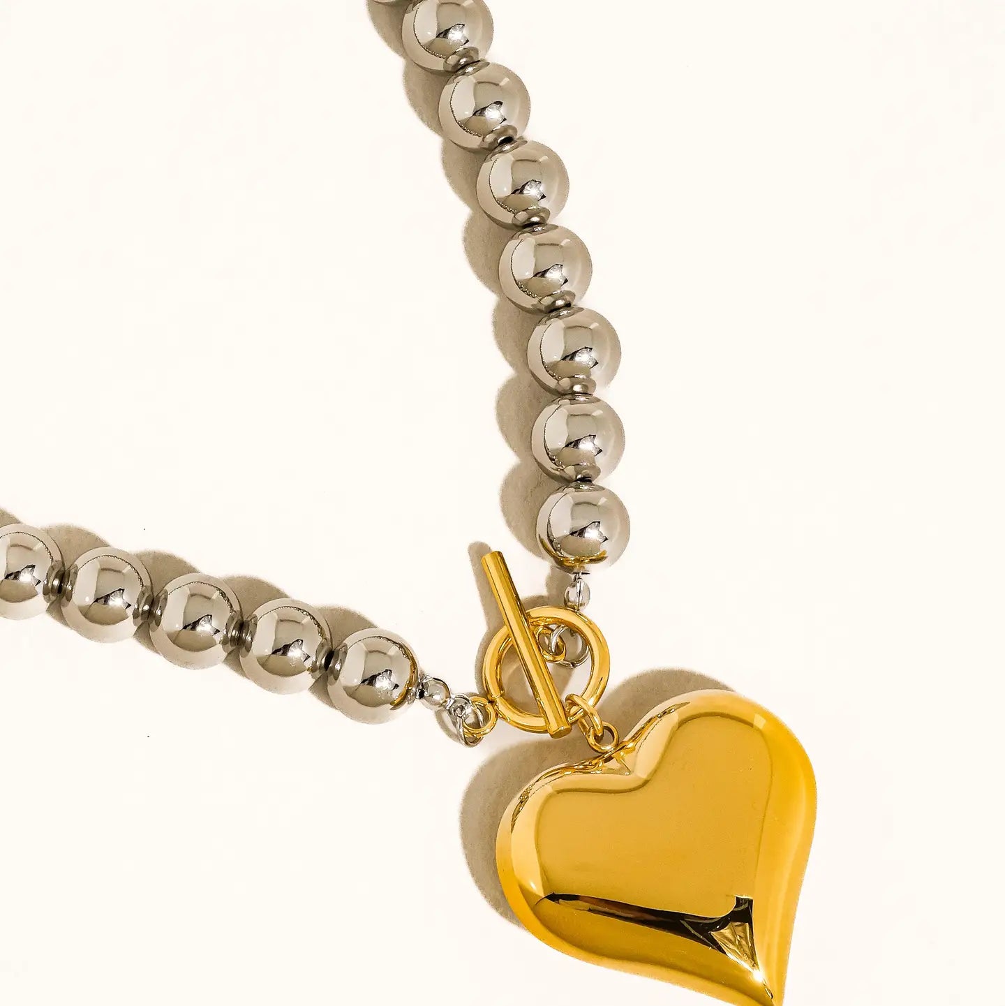 The Annette Necklace captures hearts with its charming two-tone design and timeless appeal. Crafted with 18K gold plating over hypoallergenic stainless steel, this beauty won't tarnish or fade no matter how often you wear it. The heart pendant measures 1.33" x 1.39"—substantial enough to make an impact, yet refined enough for everyday wear. At 16.34" long, the chain drapes beautifully and sits just where you want it. Lead-free and nickel-safe, it's gentle on sensitive skin, while water-resistant construction keeps it looking radiant through all your adventures. Pure romance, zero drama.