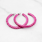 Be the ultimate Barbie babe with these pink rinestone hoop earrings! Perfect for adding a touch of playfulness to any outfit. Embrace your inner child and sparkle away with these Barbie inspired earrings.