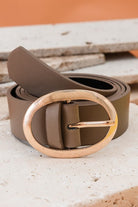 Add a cheerful touch to your wardrobe with the Bethany Belt. Its wide leather strap and classic oval buckle make it ideal for wearing high on dresses or paired with everyday outfits. The taupe color adds versatile style that complements any look with ease.