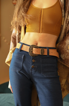 Indulge in a fusion of vintage allure and modern sensibility with our Suede Antique Gold Western Buckle Belt. This isn't just a belt; it's a statement that marries sophistication with a touch of the Wild West. The antique gold buckle adds a luxurious finish, making it a perfect match for anything from jeans to dresses. Measuring 41" x 1.9" and available in packs of 6 for immediate shipping, this vegan leather belt is the chic, ethical choice that every retailer needs. Vegan Leather