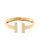 Metal T-shaped open bangle bracelet with hinge closure