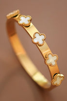 18K gold plated stainless steel hinged bangle bracelet.Inner oval diameter: 2.36"