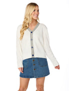 Preppy perfection! This loose fitting cardigan with glitter script detailing, matching buttons, and accent trim belongs in your game day wardrobe. Dress it up or down and wear it in all the seasons to support the team you love.