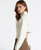 The perfect sweater doesn’t exi... oh wait, this one does! 🍂✨ Perfect for fall, a girls' day out, or even date night, this cozy beauty has it all. With a chic turtleneck and a lace-up back detail, you'll feel fabulous and snug all day or night long. Made with 79% Acrylic, 8% Polyester, 8% Nylon, and 5% Wool—this sweater is the ultimate blend of style and comfort.