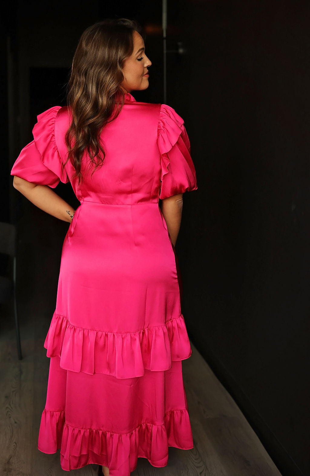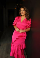 You can go from day to night in a flash in our Bianca Dress. Perfect for a lunch date or Winter wedding the Bianca dress does it all. The Bianca is a pleated V-neck dress with tiered skirt, side zipper and short balloon sleeve.