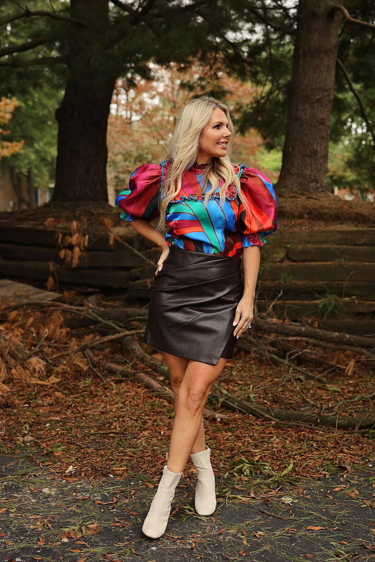 The Fields Skirt adds a touch of whimsy to your wardrobe with its faux wrap design. Perfect for a playful day out, this skirt will have you twirling with joy.