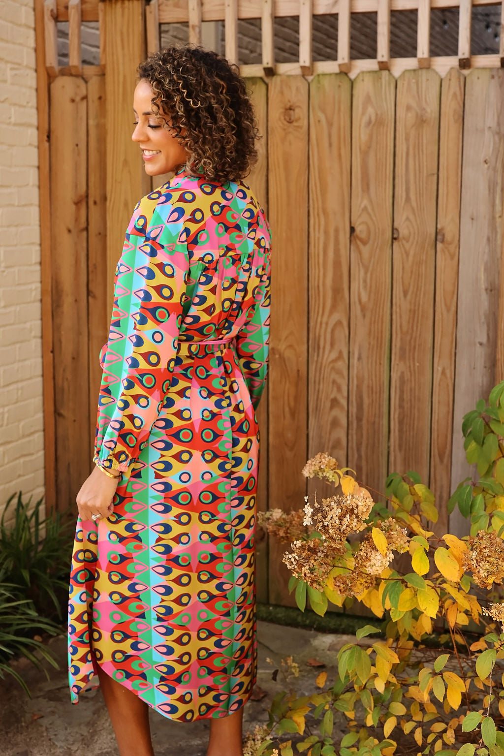 You will be the definition of trendy yet glamorous in our Jane Dress--all that's missing is your favorite pair of heels and fun earrings! The Jane is a loose fitting button down frock with long sleeves and a tie belt for a more fitted look.
