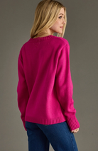 Our trendy magenta Merry & Bright Sweater is a must-have this Holiday Season