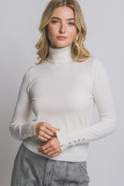 The Paula Sweater is your new go-to layering piece with full sleeves finished with charming button details at the cuffs. Designed for a relaxed, comfortable fit, it pairs effortlessly with everything in your closet. Our model wears a size Small.