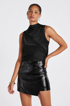 Unleash your inner fashionista with the Paulina Skirt! Made from patent fabric, this pauline faux wrap skirt will have you shining like a star. Show off your unique style with this eye-catching piece.