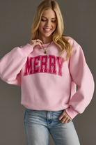 Our trendy pink Merry Sweatshirt is a must-have this Holiday Season