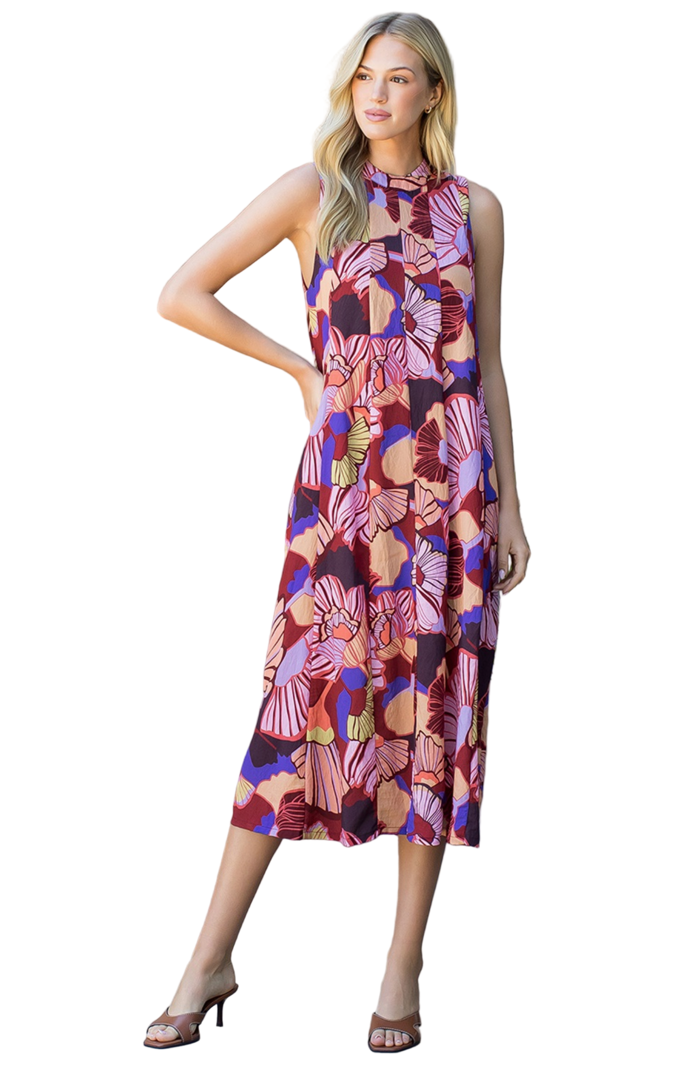 Sleeveless Floral Print Dress Style Measurements for Size S