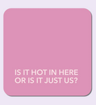 Text: IS IT HOT IN HERE OR IS IT JUST US?