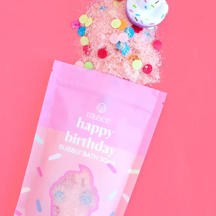 Make everyday feel like its your birthday with this Cotton Candy Scented Bubbly Bath Soak! This soak makes a colorful bubble bath! Makes 3-4 baths. Featured Ingredient - Epsom Salt Epsom Salt is the key ingredient in this bath soak. It helps to soothe and relax tired and sore muscles. Epsom salt can alleviate pain from your back and your arms and legs. Surprise - Cupcake Duckie inside. Great for: Gifting Moisturizing Sustainable Gifts Natural Gifts Cleansing Gentle on skin All Ages Kids Bath Birthdays