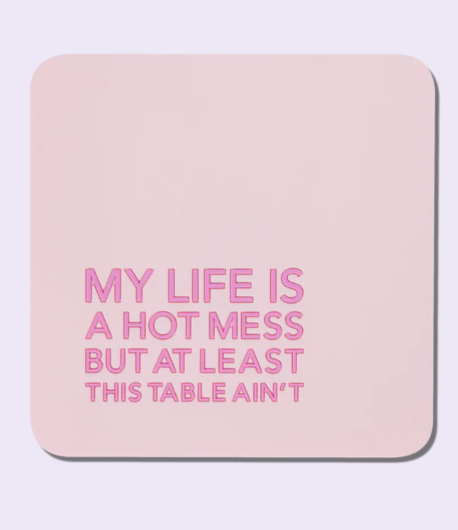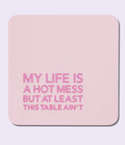 Coaster text: MY LIFE IS A HOT MESS BUT AT LEAST THIS TABLE AIN'T