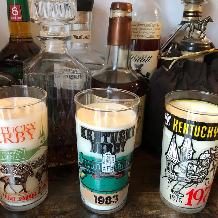 Our Kentucky Derby Glass Candles consist of varying year Derby glasses with your choice of scent mixed set of glasses will be from the 80's, 90's, and/or 2000's.