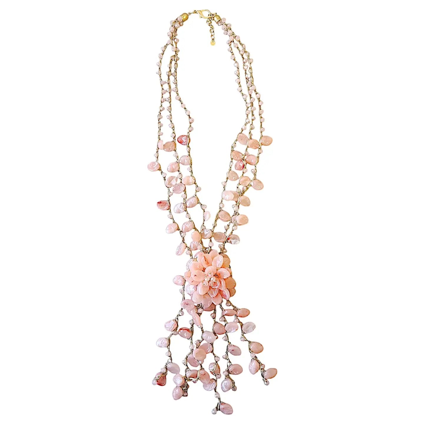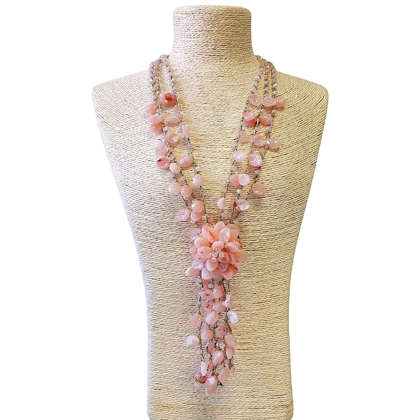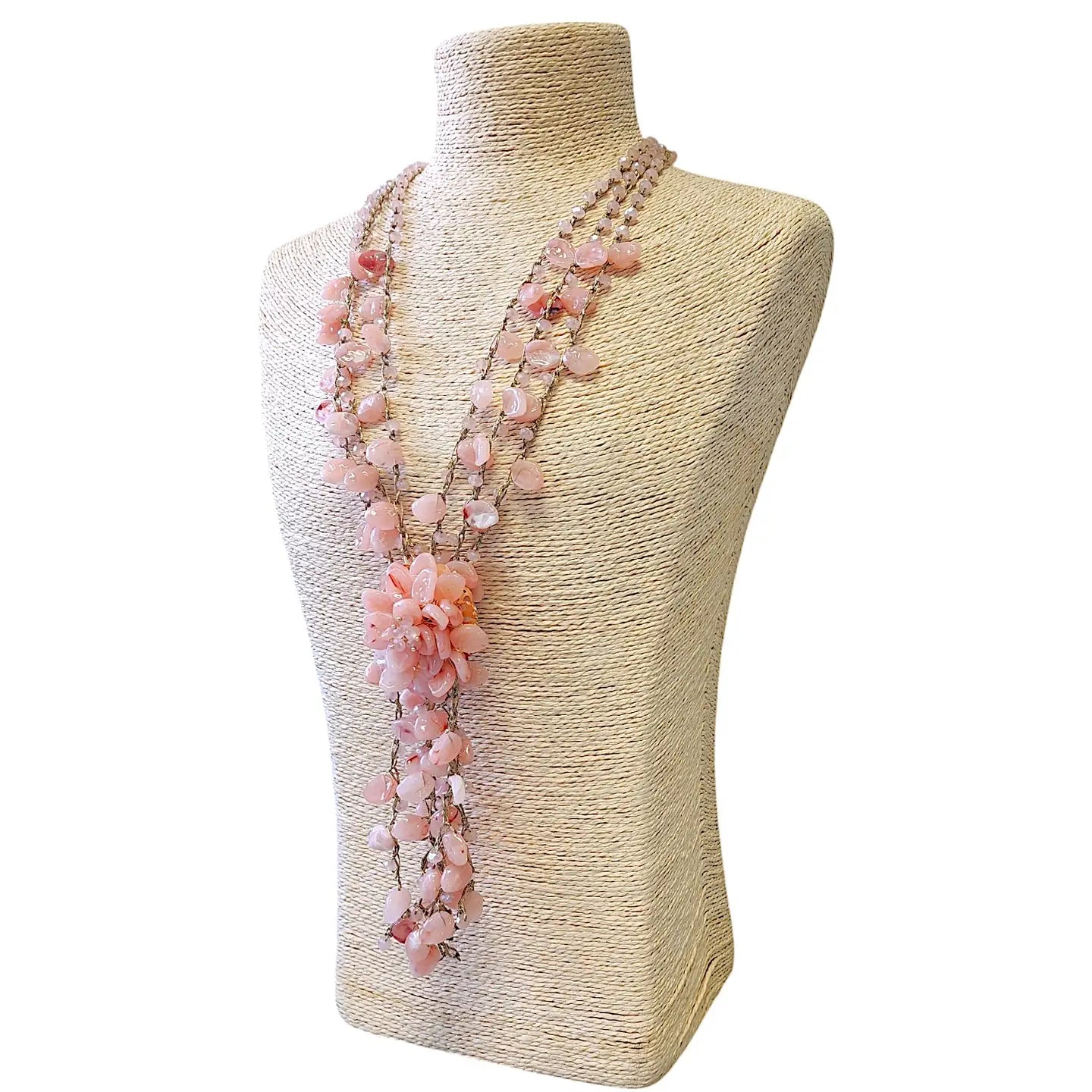 What makes this necklace unique? * 38" + 3" Extender * Soft Pastel Powder Pink in Cherry Blossom Shades * Silk Thread in Shiny Metallic Gold * Lobster Claw Clasp