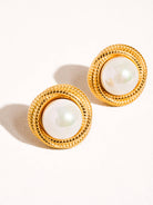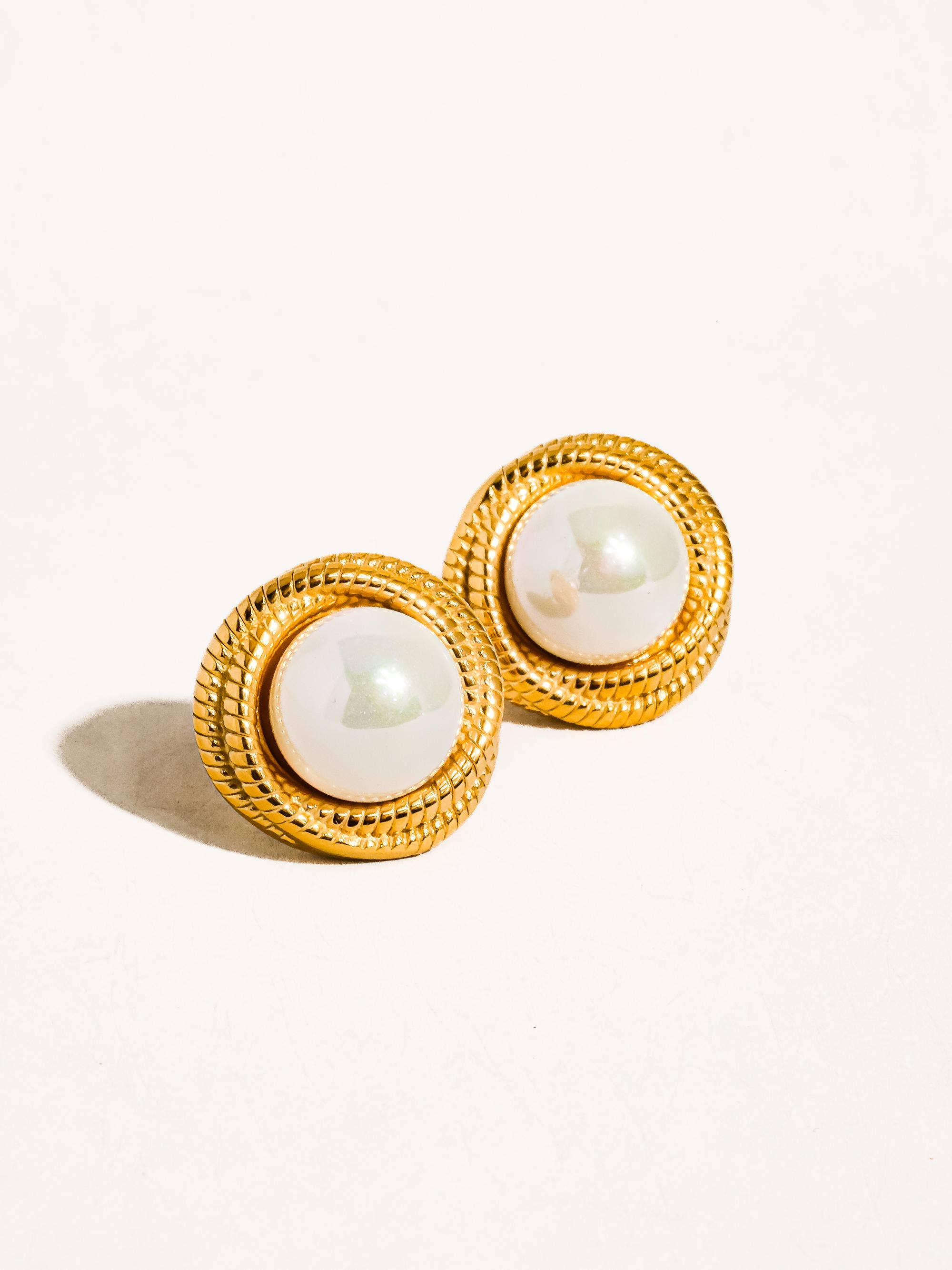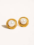18K Gold Non-Tarnish Pearl Studs 18K Gold Plating Stainless Steel Faux Pearl Measurement (L x W inch): 0.86 Diameter - Lead and Nickel Free - Hypoallergenic - Water Resistant