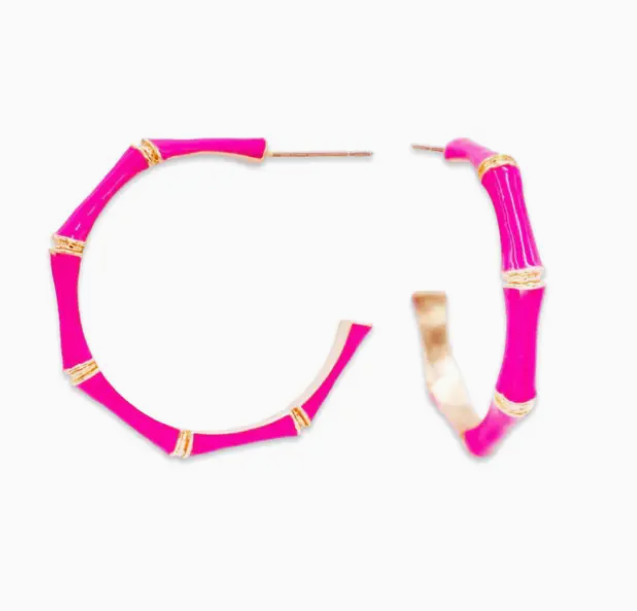 Add a pop of color to your look with our Fuchsia Bamboo Hoop earrings. Made with sustainable bamboo, these hoops are not only stylish but also environmentally friendly. Perfect for any occasion, these hoops will definitely make you stand out in a happy and eco-friendly way.b
