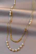 Dainty 18K Gold Plated Stainless Steel Chain Multi Layer Necklace with Pearls.