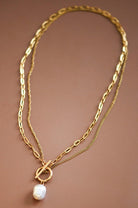 Dainty 18K Gold Plated Stainless Steel Chain Multi Layer Necklace with Pearls.