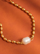 18K Gold Non-Tarnish Pearl Ball Chain Necklace 18K Gold Plating Stainless Steel Freshwater Pearl Chain Length (inch): 16 Extension: 2 - Lead and Nickel Free - Hypoallergenic - Water Resistant
