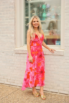 Get ready to turn heads with the Fairlee Dress! This sleeveless midi dress features a stunning bustier accent and is adorned with a unique grenadine painted floral design. Perfect for any occasion, you'll feel confident and stylish in this one-of-a-kind piece.