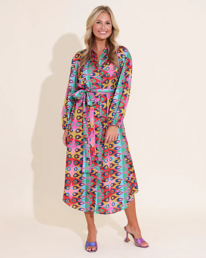 You will be the definition of trendy yet glamorous in our Jane Dress--all that's missing is your favorite pair of heels and fun earrings! The Jane is a loose fitting button down frock with long sleeves and a tie belt for a more fitted look.