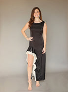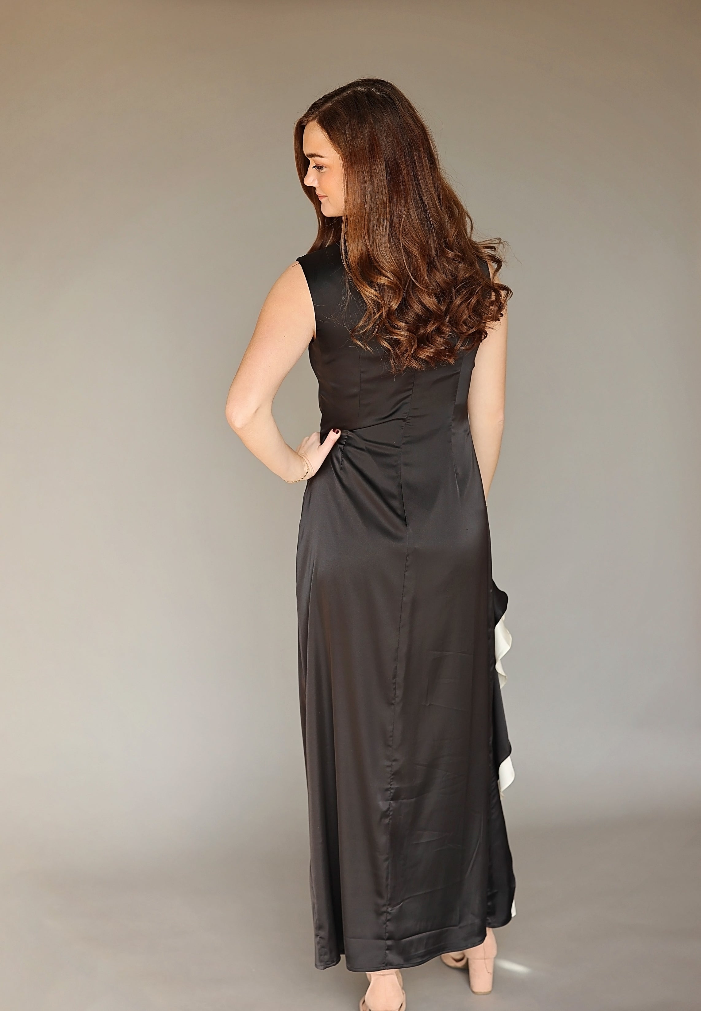 Get ready to turn heads in our Primrose Dress! This sleeveless maxi dress features a playful ruffle detail and a flirty slit for added charm. Perfect for any occasion, this dress will have you feeling confidently stylish.
