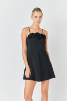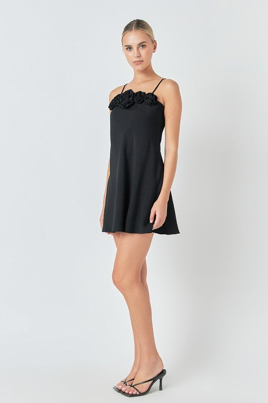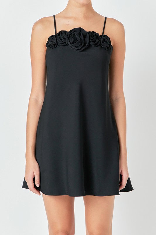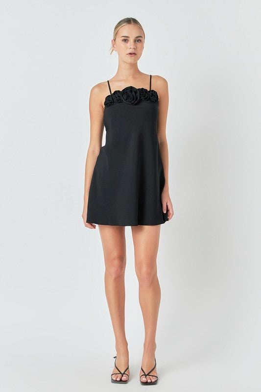 Get ready to bloom in the Addison Dress! This fun and flirty mini features a flower corsage trim and adjustable straps for a playful look. The relaxed fit and flared design make it perfect for any occasion. With a side zipper and lining for added comfort, this dress has it all!