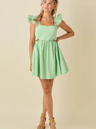 Elevate your weekend wardrobe with the Amanda Dress, a charming scallop mini featuring ruffled shoulder elastic straps and delicate cut-out details. The center back zipper and smocking band torso create a flattering silhouette, while full lining ensures comfort all day long. Perfect for brunch dates and casual outings, pair it with a tote and mules for an effortlessly chic ensemble.