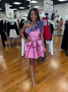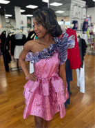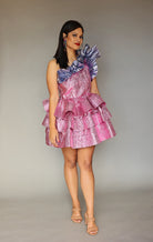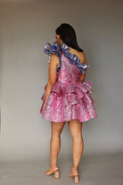 Festive season is clearly here - this mini, ruffled, asymmetric shoulder lilac dress is perfect for a party! The textured fabric adds a touch of drama, and the ruffled sleeve is simply to die for!