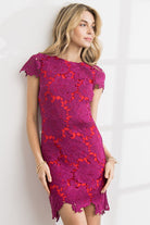 Get ready to turn heads in the Charlotte Dress! With its playful cap sleeves and elegant lace detailing, this dress is perfect for any occasion. The contrast lining adds a touch of fun and uniqueness to this already stunning piece. Make a statement and stand out in the Charlotte Dress!