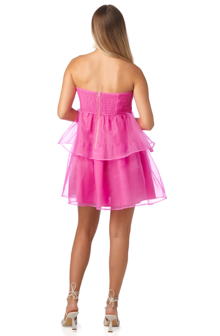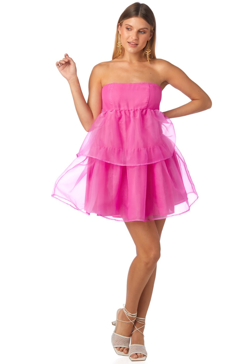 The Dabney Dress Pink is the perfect choice for a night out. Featuring a strapless design with ruffled tiers in a bright pink hue, this dress is fun and flirty while still feeling dressy and sophisticated. A great way to make a statement at any special occasion.