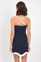 Get ready to turn heads in our Eilish Dress! This navy and ecru mini dress features a playful scalloped linen trim, perfect for adding a touch of quirkiness to your summer wardrobe. Stand out from the crowd and make a statement in this unique dress!