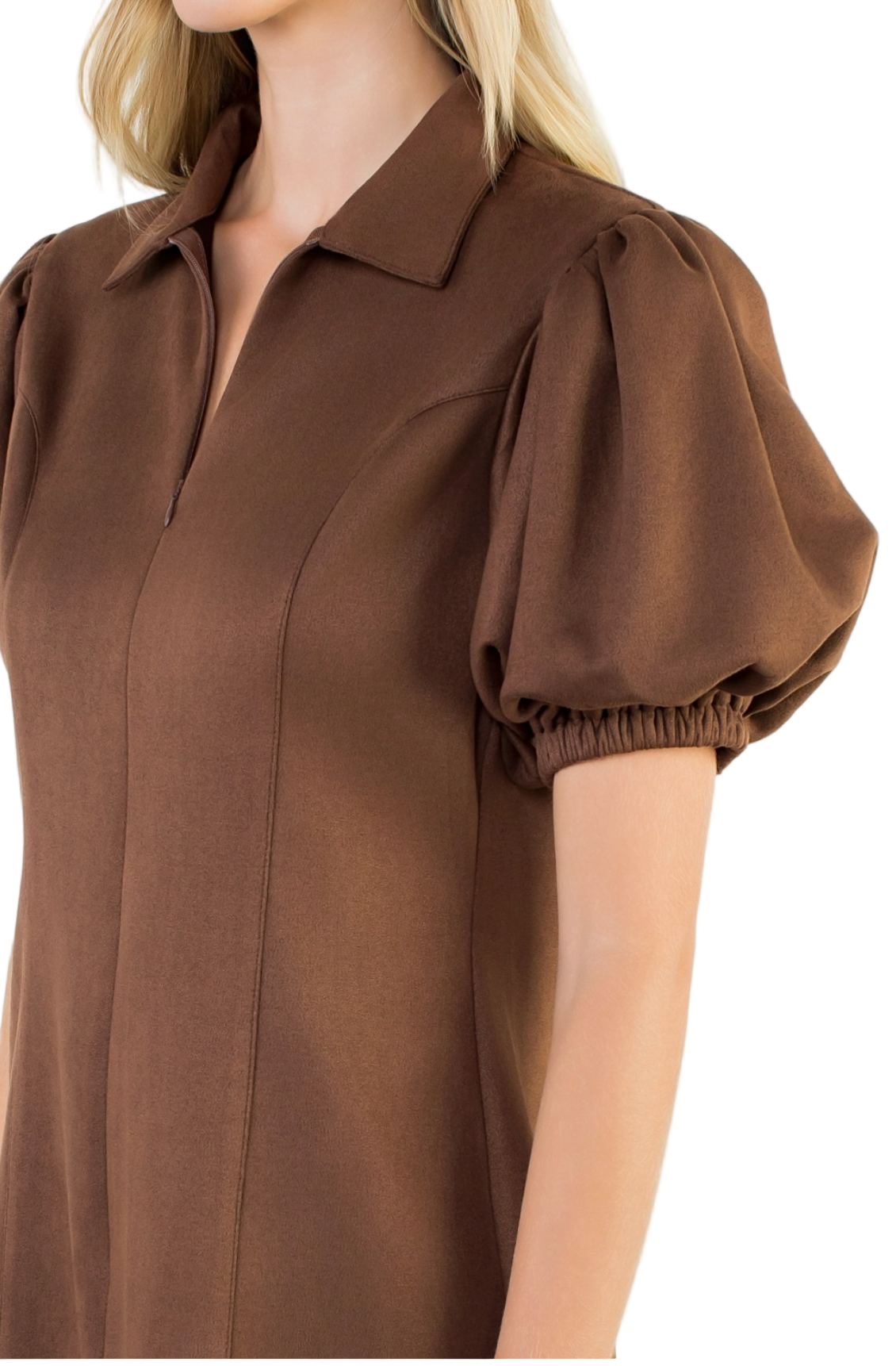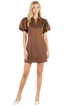 Collared Puff Sleeve Suede Dress