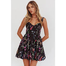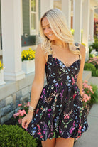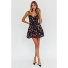 Introducing the Judith Dress! A happy addition to your wardrobe with its adorable black floral print and playful bubble bottom. Show off your arms with the sleeveless design and adjust the straps for a perfect fit. This mini dress will bring joy to your next outing.