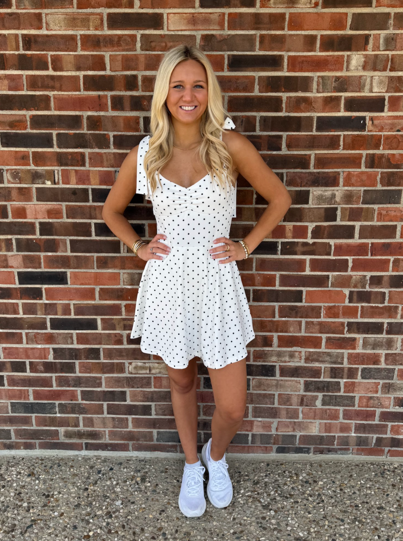 Stay stylish and comfortable with the Keisha Dress. This polka-dotted fit-and-flare athleisure dress not only looks great, but also features lined shorts for added convenience. Say hello to effortless style and movement in one happy package.