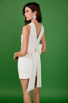 Get ready to turn heads in the playful Mary Dress! With its mini length and V neckline, this dress flatters your silhouette while the back bow adds a touch of whimsy. Perfect for a night out or special occasion, it's sleeveless and lined for maximum comfort.