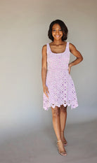 Elevate your wardrobe with the must-have mini dress of the season - the Maryum Dress. This timeless crochet dress features a flap square scoop neck and a flattering flare shark bite hem, complete with a matching self tie belt. Perfect for any occasion, whether it's a casual outing, a brunch date, a wedding, or a romantic evening. Get that effortless cottage core look with the Maryum Dress.