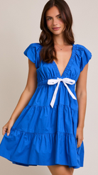 The Courtney Dress is a cheerful mini dress featuring a flattering V-neckline and a charming front tie ribbon that adds a playful touch. Perfect for sunny days or casual outings, its light and breezy design keeps you comfortable while looking effortlessly stylish. Embrace a joyful vibe with this easy-to-wear dress that brightens your wardrobe.
