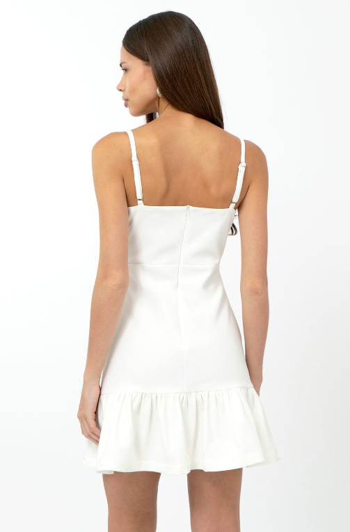 Unleash your flower power with the Mirabel Dress! This mini dress features delicate floral appliques, perfect for brides, spring, and graduation. Say 'I do' to this ivory stunner and bloom in style.