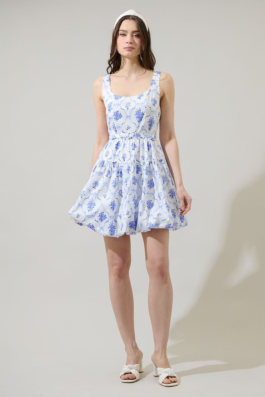 Be the best-dressed in the Nia Floral Dress! Its soft floral design, bubble skirt, and tiered features make you stand out. The round open back with a zipper and sleeveless look adds to the fun. Goes with any heels! Perfect for a playful, stylish look.