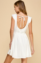Sail into style with the Reese Dress. This boat neckline dress features playful cap sleeves and a deep white back for a touch of sophistication. Perfect for any occasion, this dress will keep you looking effortlessly chic.
