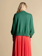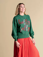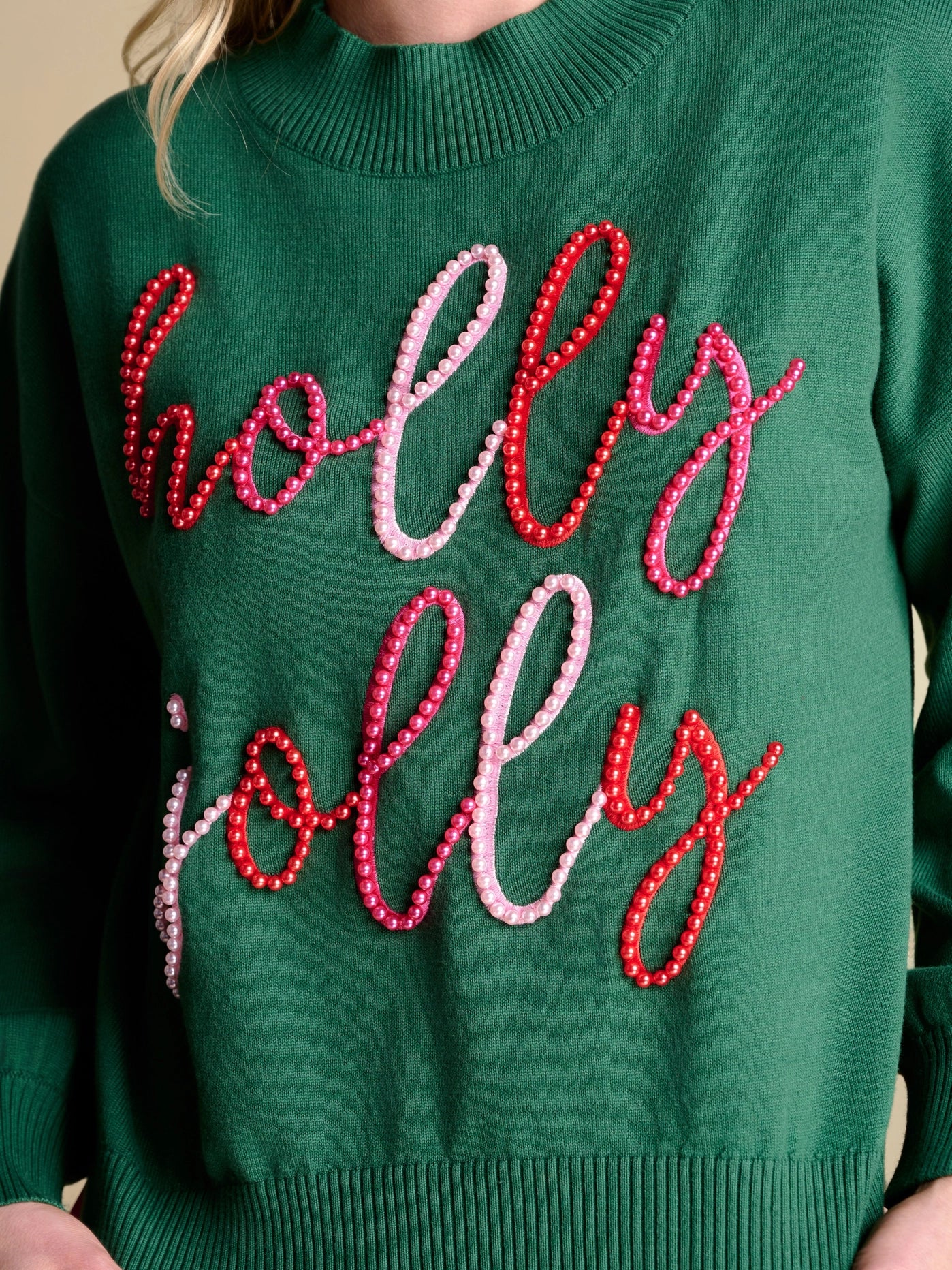A trending mockneck silhouette accented with dainty detailing. Designed with a lived-in, relaxed fit and finished with polished pearl script embroidery, this lightweight knit is the perfect balance between laid-back luxury and holiday spirit. We’re styling it with a festive skirt and statement heels for a look that’s effortlessly elevated for every occasion.