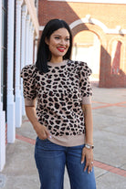 - Crew Neck Leopard Printed Jacquard Knitted Sweater