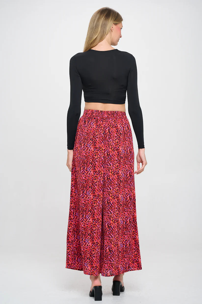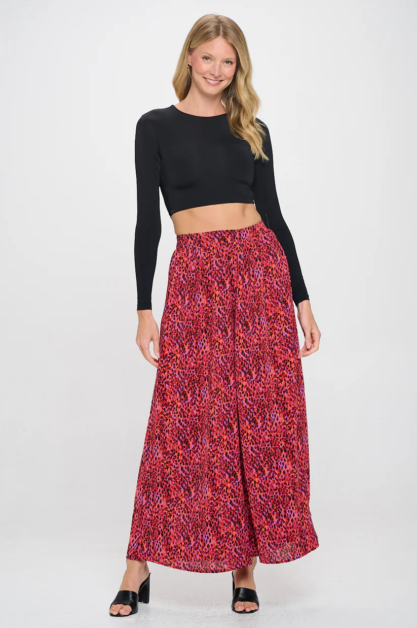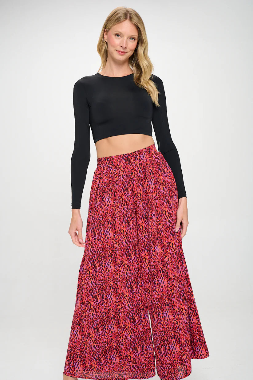 These eye-catching pants feature a dynamic red and purple abstract print, perfect for making a statement. The high-waisted design and flowy wide-leg silhouette offer both comfort and a flattering fit, ideal for various occasions. Crafted from lightweight, breathable fabric, these pants ensure ease of movement and style.