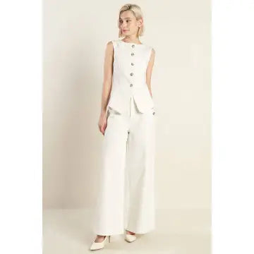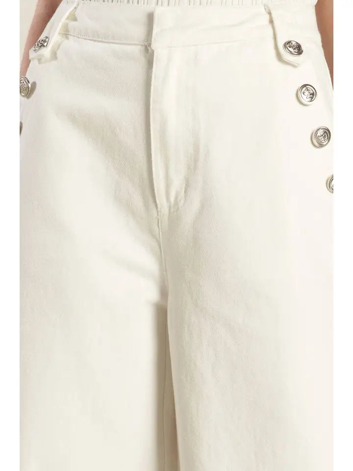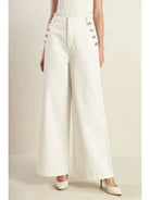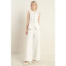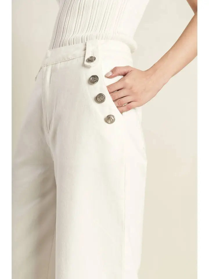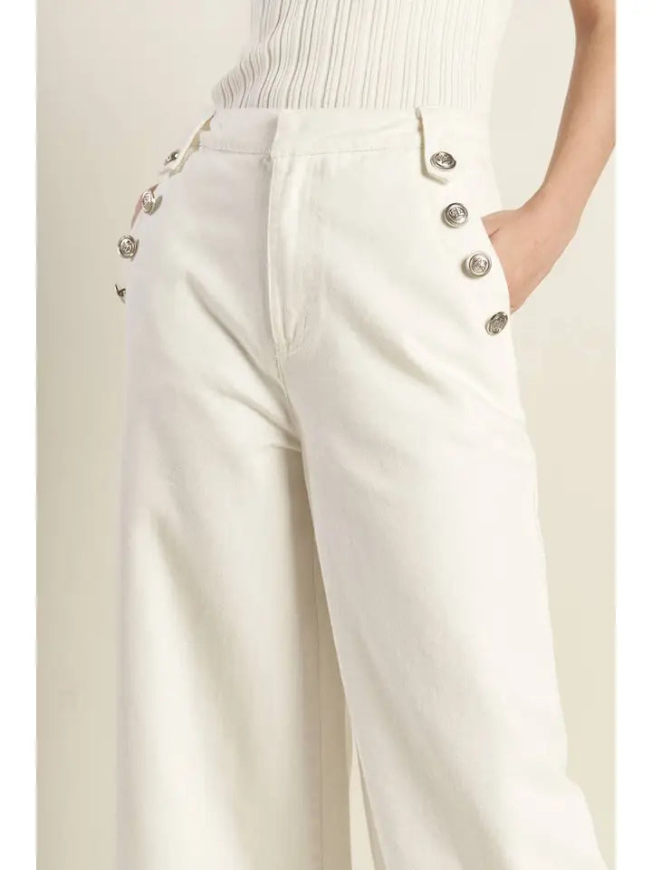 Upgrade your wardrobe with the Linda Pants! These solid woven pants feature a convenient front closure and side pockets, perfect for everyday wear. The wide leg design offers comfort and style. Happy shopping!