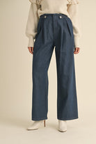 Get ready to strut your stuff in our Lisa Pants! These high waist beauties feature a front pleat and button detail for a chic touch. Made from comfortable denim, these wide leg pants will elevate your style game and keep you looking and feeling great all day long. It's all about fashion and function with the Lisa Pants!